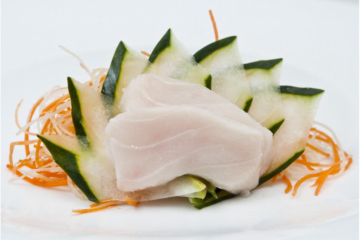 Peixe branco sashimi. Os melhores tipos de peixe para se fazer sashimi são o salmão o atum e alguns peixes brancos. 5 fatias 50 g por porção. Almoço na sexta sábado e domingo com Buffet de sushi sashimi saladas e pratos quentes.